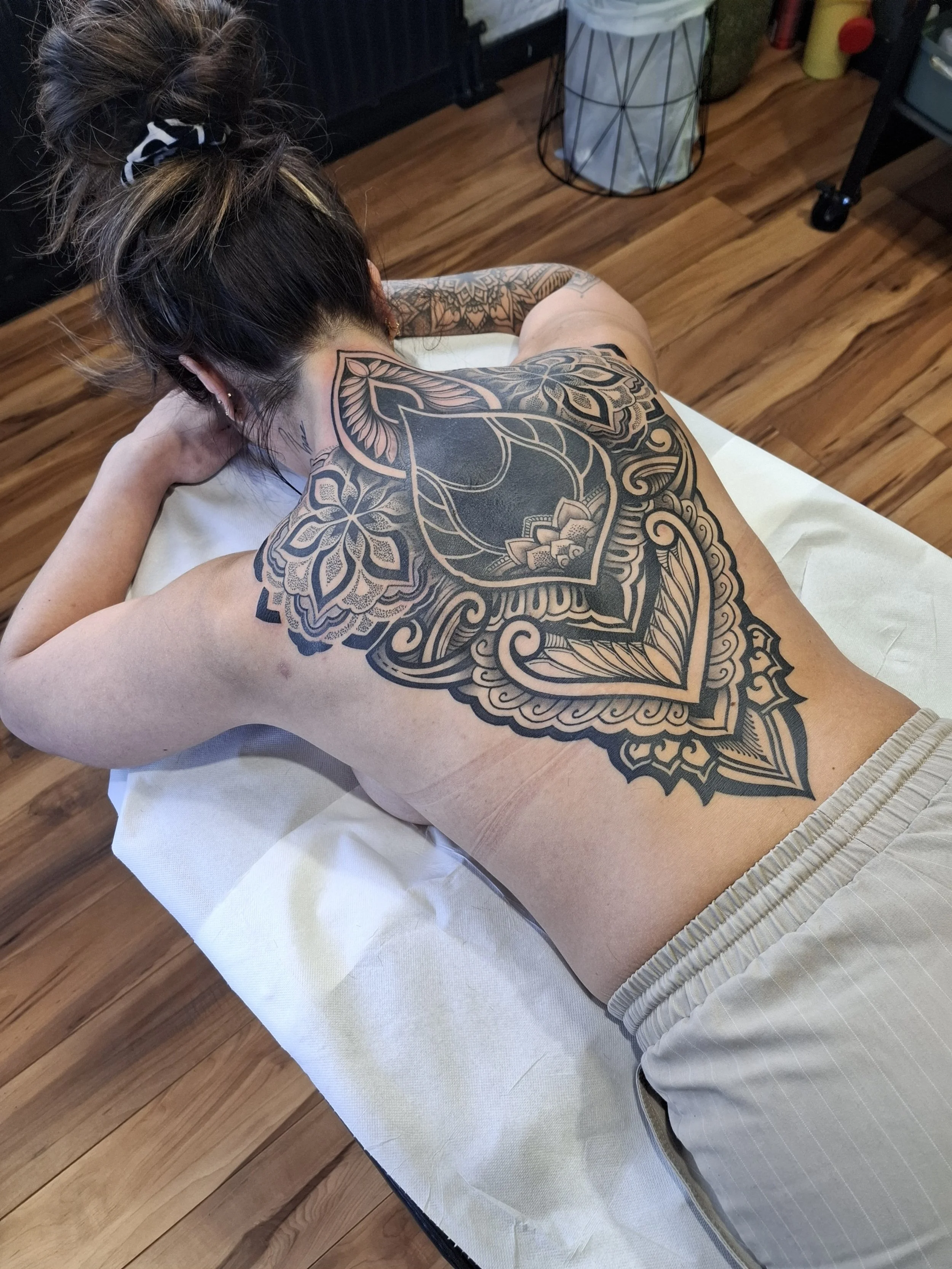 For most of my designs, I work in a freehand/freestyle method. For my style of work, I find this is the best method to create a design that flows with the area we are tattooing, as well as making sure the design is unique and specific to each client. My goal is for you to love your new tattoo!